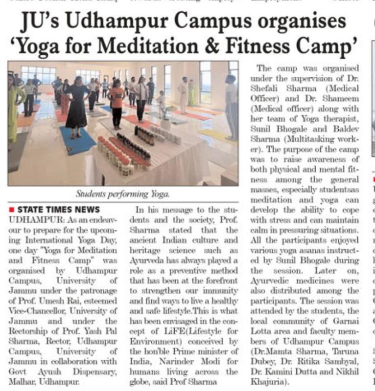 +JU's Udhampur Campus organises 'Yoga for Meditation and Fitness Camp'