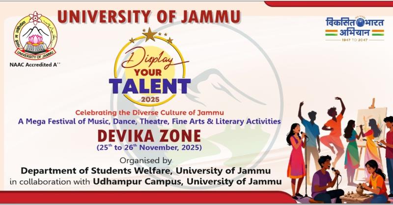 Monday, November 24, 2025The University of Jammu proudly hosts Display Your Talent 2025 – Devika Zone, a mega festival of cultural and artistic expression from 25th to 26th November 2025.Read More